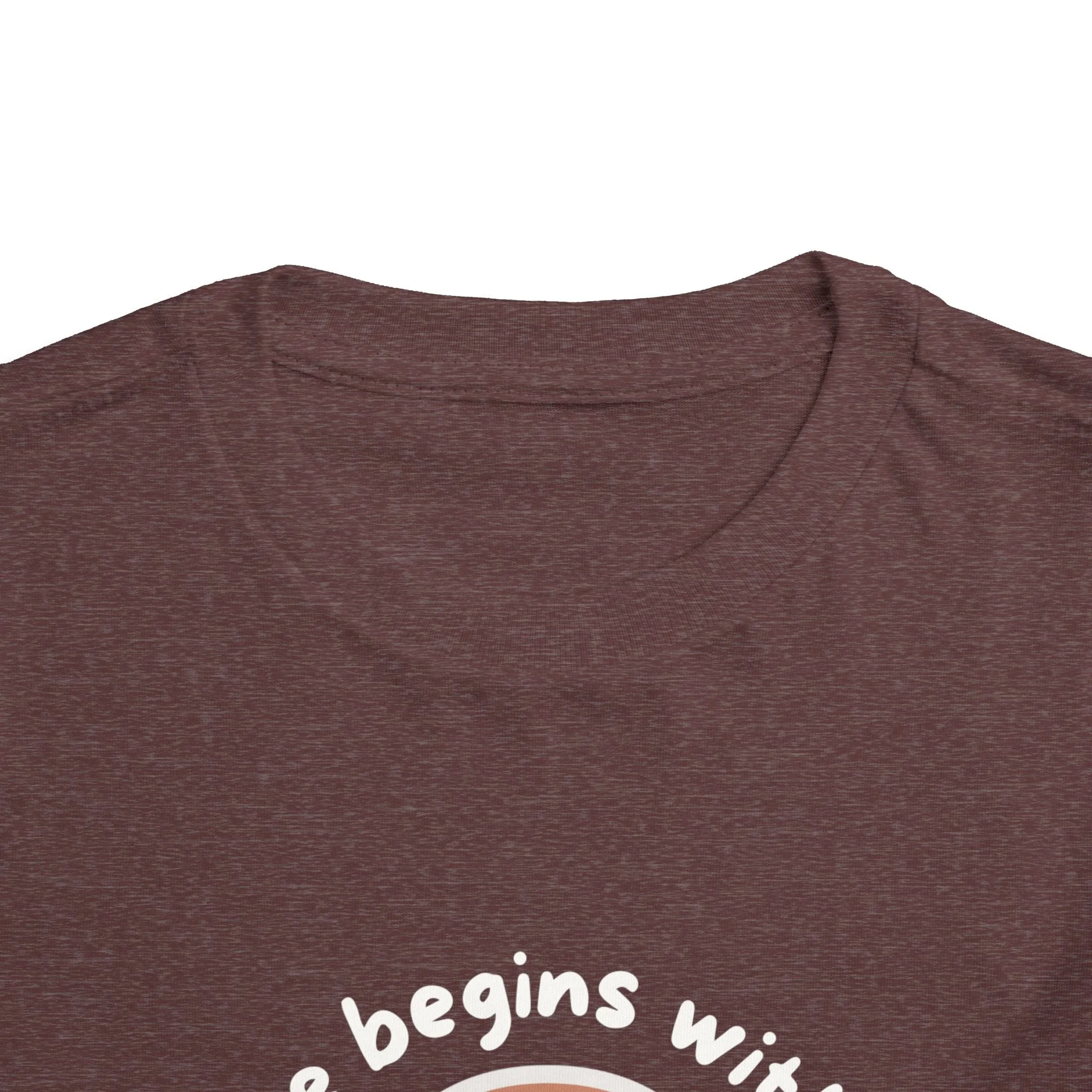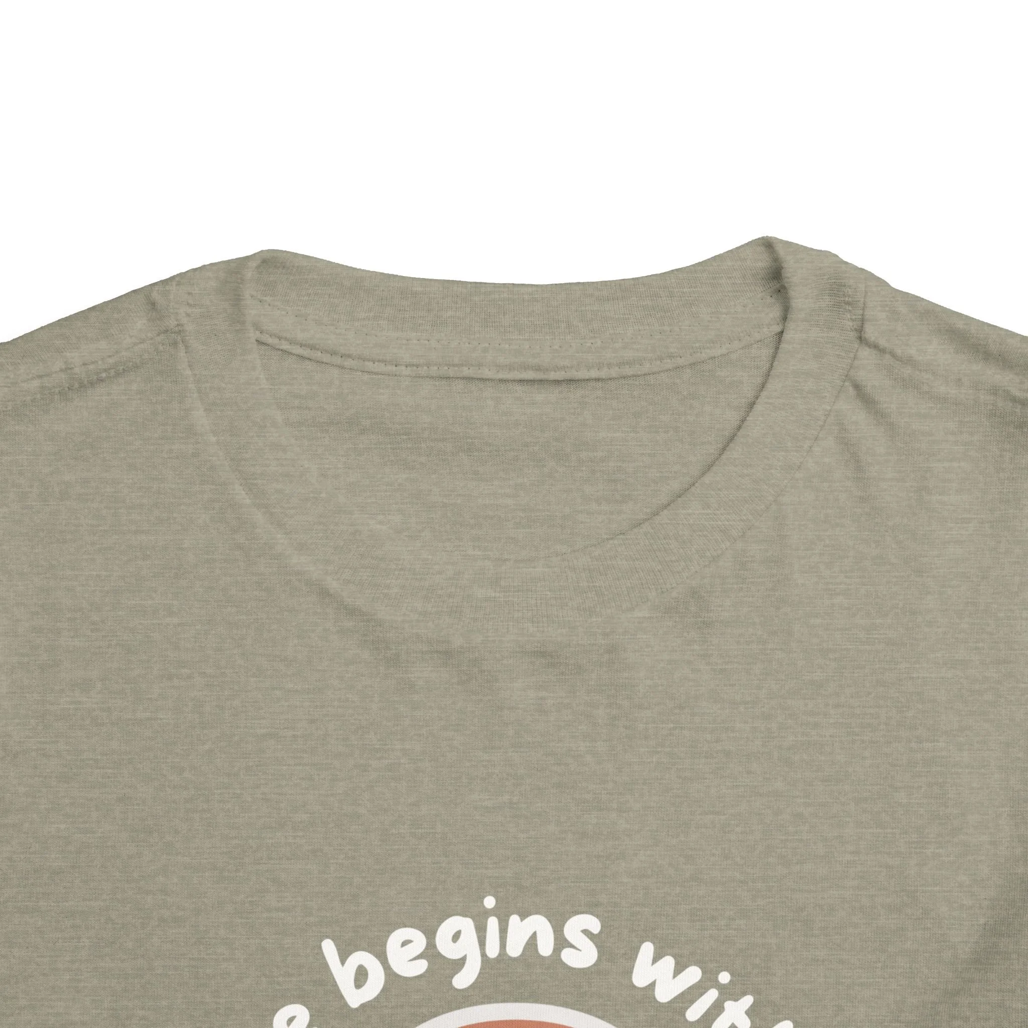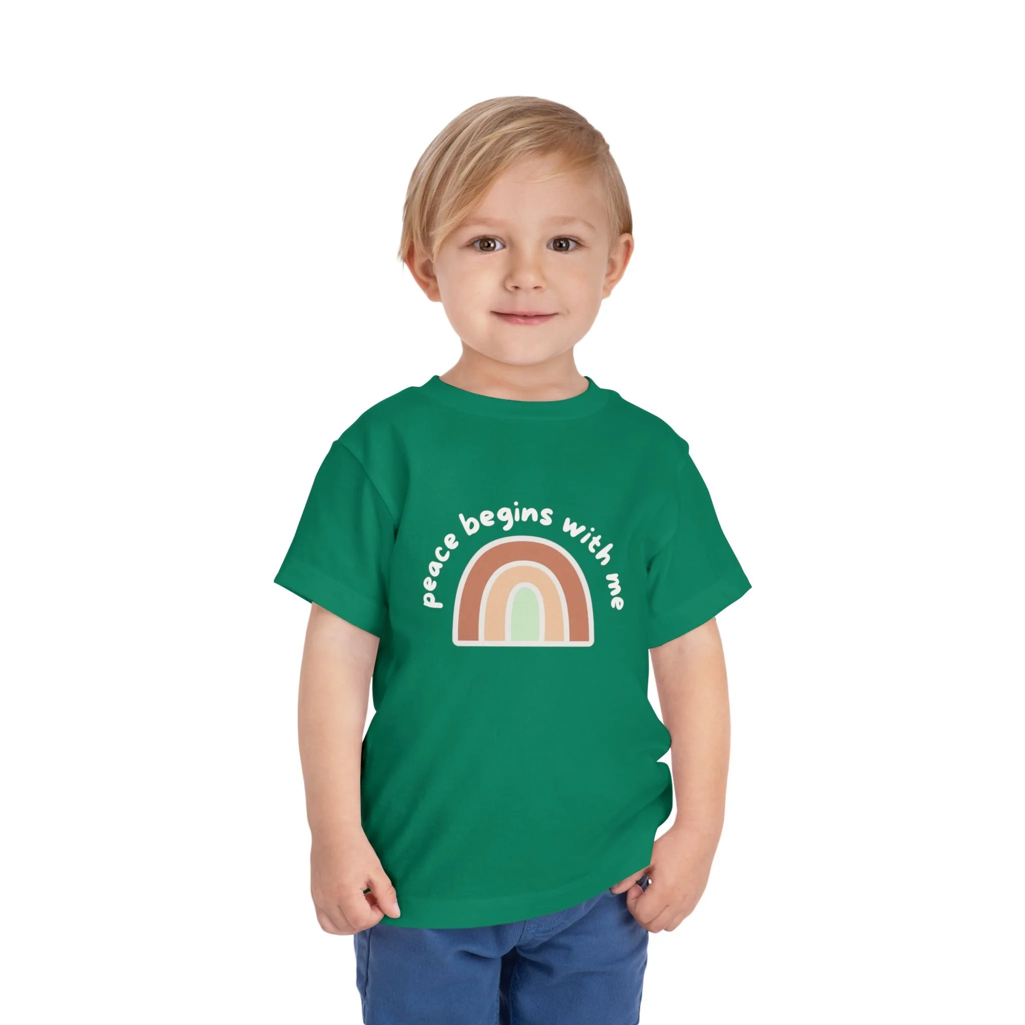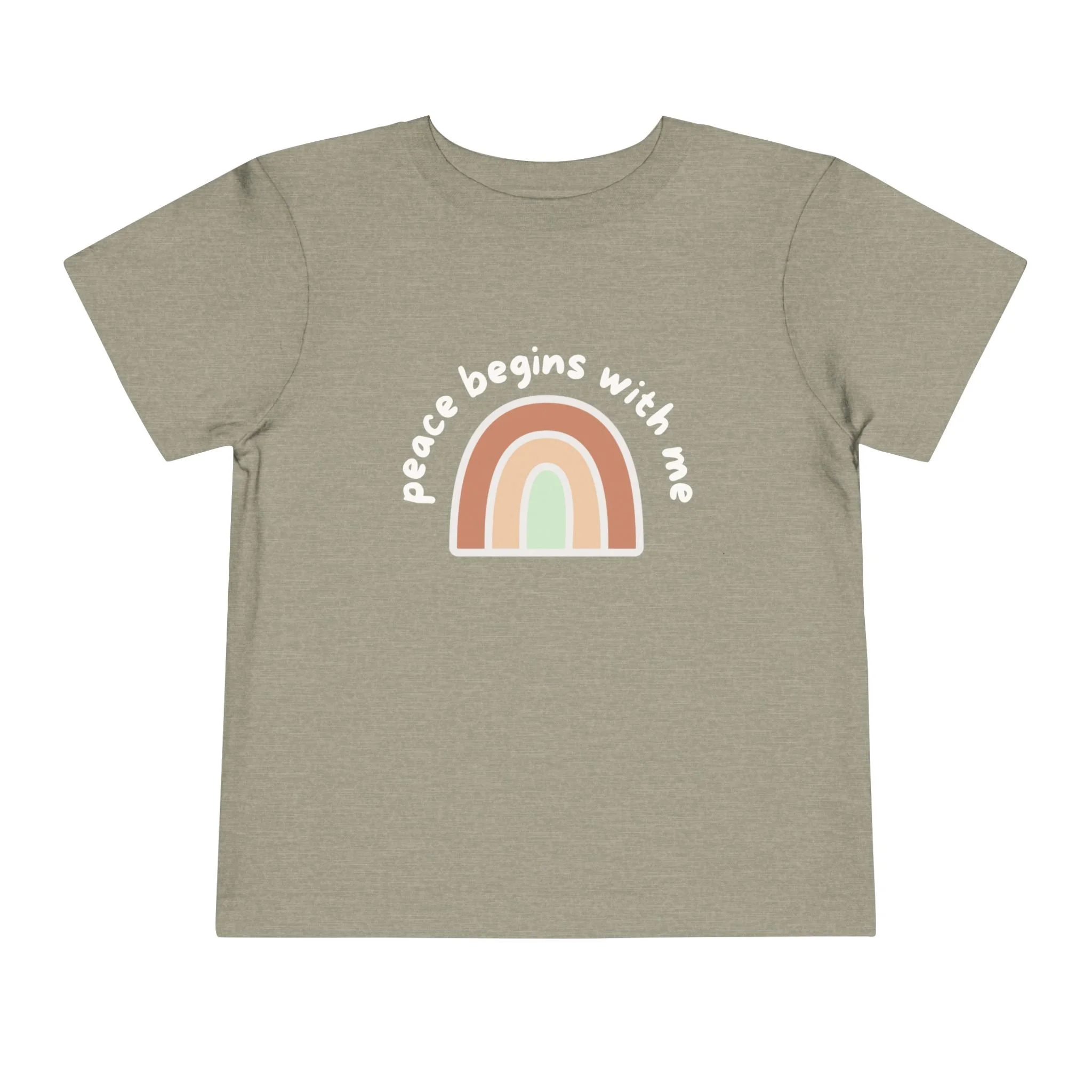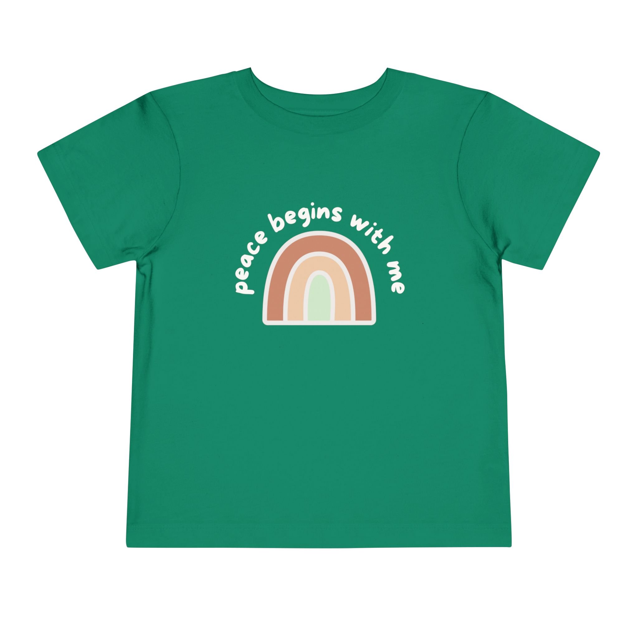 This soft toddler tee brings calm to little wardrobes with a gentle, retro rainbow and the phrase “peace begins with me.” Lightweight and breathable, it drapes like a warm breeze on sunny mornings and quiet afternoons. The muted, earthy palette and simple arc design feel hand-drawn and cozy — a quiet reminder for curious toddlers learning kindness. It pairs easily with leggings, overalls, or cozy knit cardigans for neighborhood strolls, storytime at the library, or slow mornings at home. The tear-away label and side-seamed construction keep irritation low so little ones stay comfortable while exploring, snuggling, and practicing small acts of calm.
