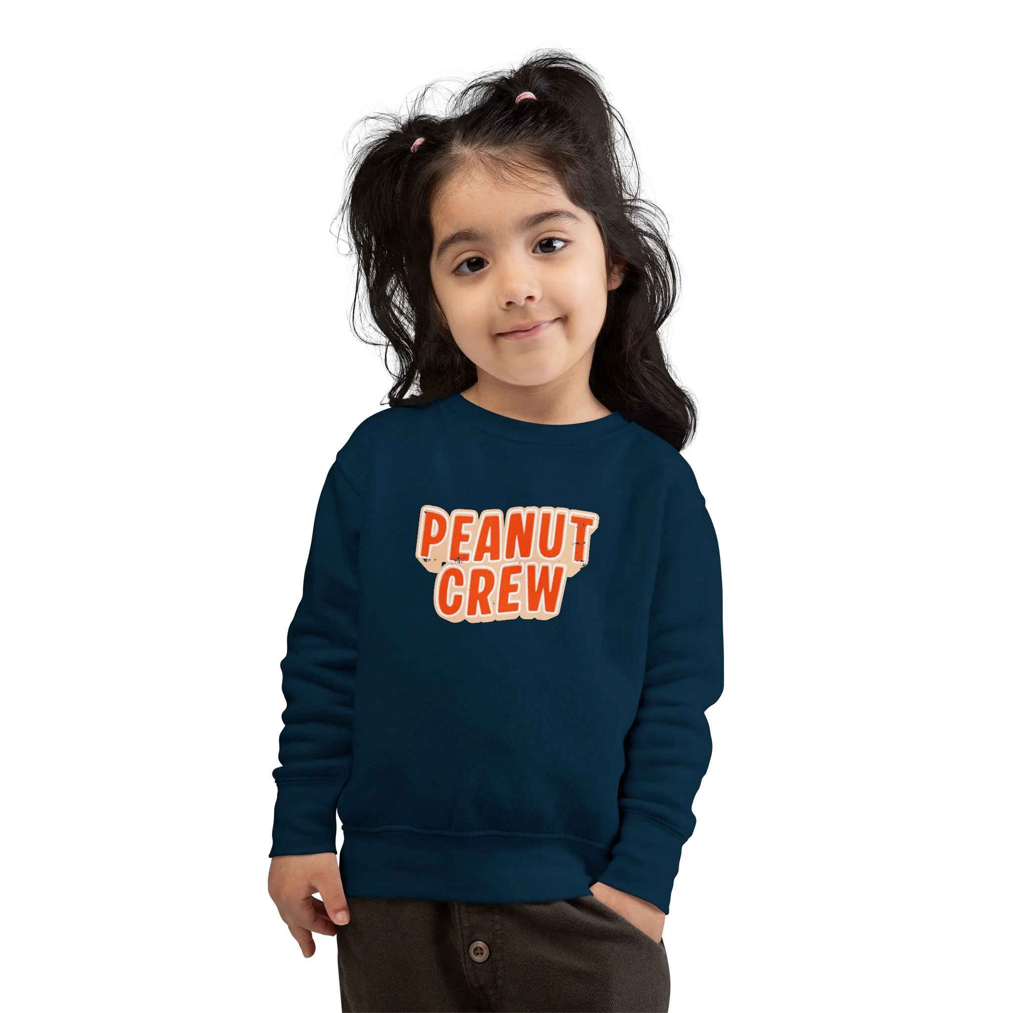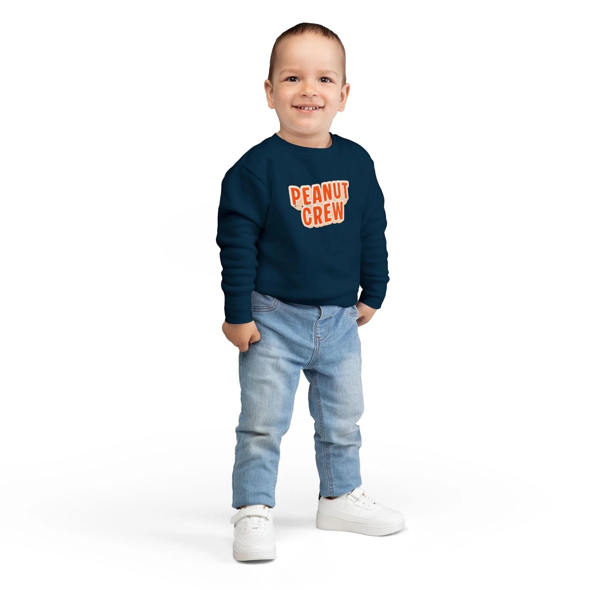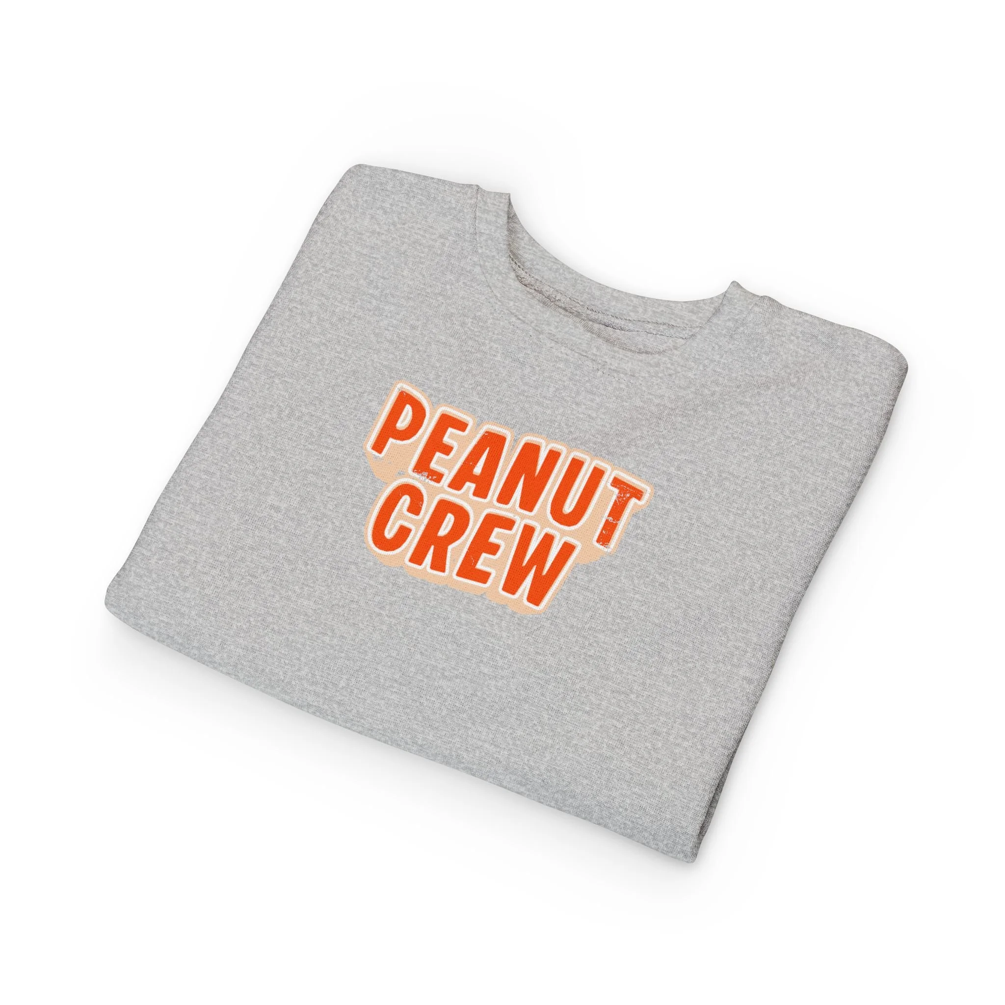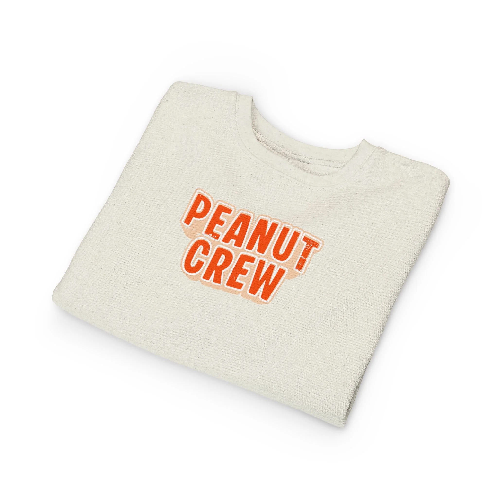 Soft, cozy, and playfully retro — this toddler sweatshirt wraps little ones in gentle warmth while celebrating their peanut-sized personalities. The speckled natural heather fabric and rounded, bold “PEANUT CREW” print sit like a sunny patch of fun on the chest. Lightweight yet warm, the medium-weight blend holds its shape through playtime and naps. Thoughtful details — ribbed cuffs and waistband, coverstitched seams, and a tear-away label — keep comfort front and center so kids can move freely and parents can breathe easy. Slip it on for chilly mornings at the park, family photos, or quiet couch days where tiny giggles and snack-time crumbs rule the world.