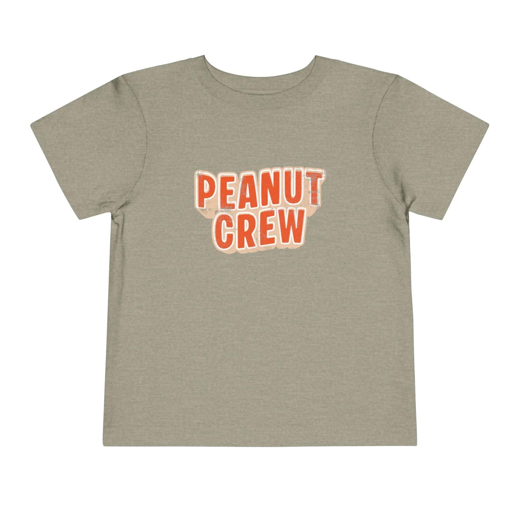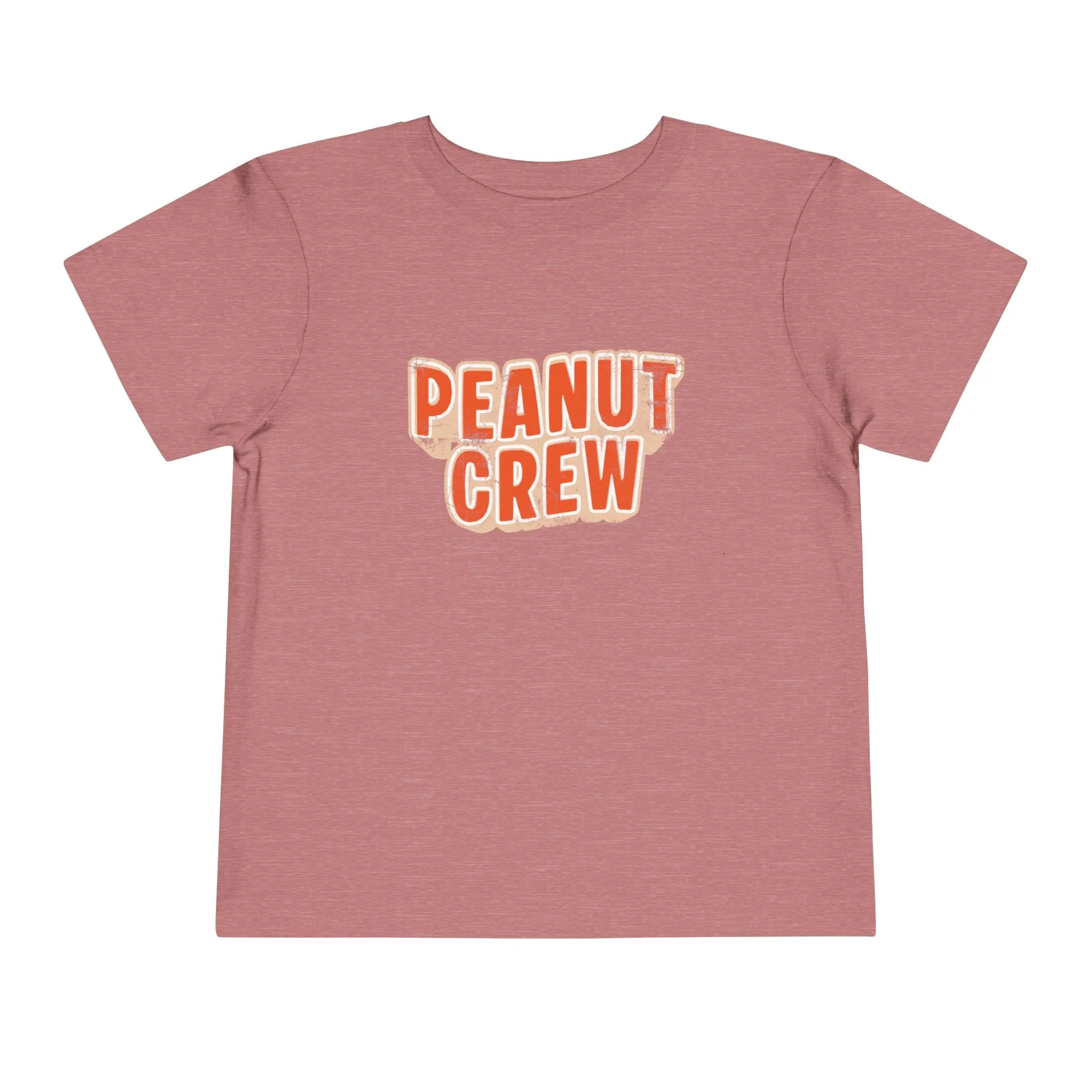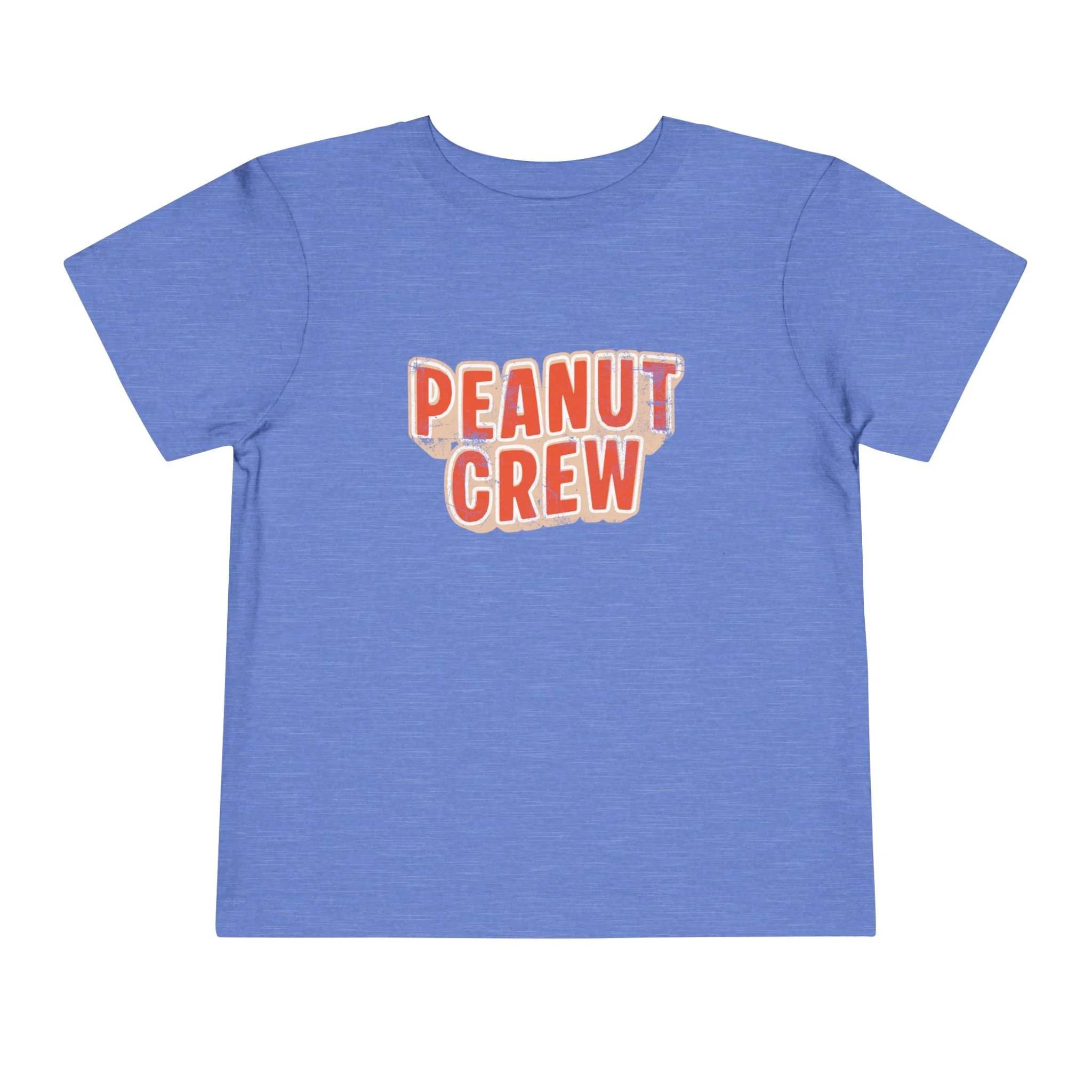 Small hands, big personality. This soft toddler tee carries a playful retro badge-style print that reads “Peanut Crew,” made to sit easy on wiggly afternoons and cozy family mornings. The lightweight knit breathes during playground chases and stroller naps, while the side-seamed shape keeps the shirt from twisting as they move. Simple, soft, and made to be worn again and again — a little wardrobe staple for tiny adventurers who love color and comfort.