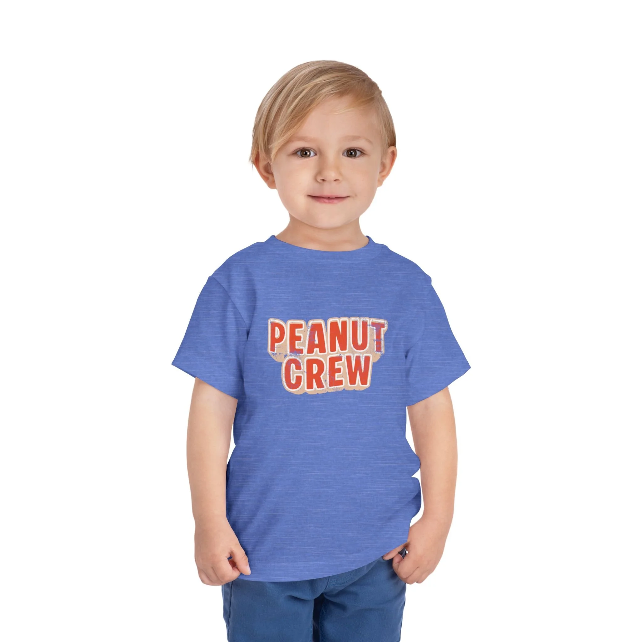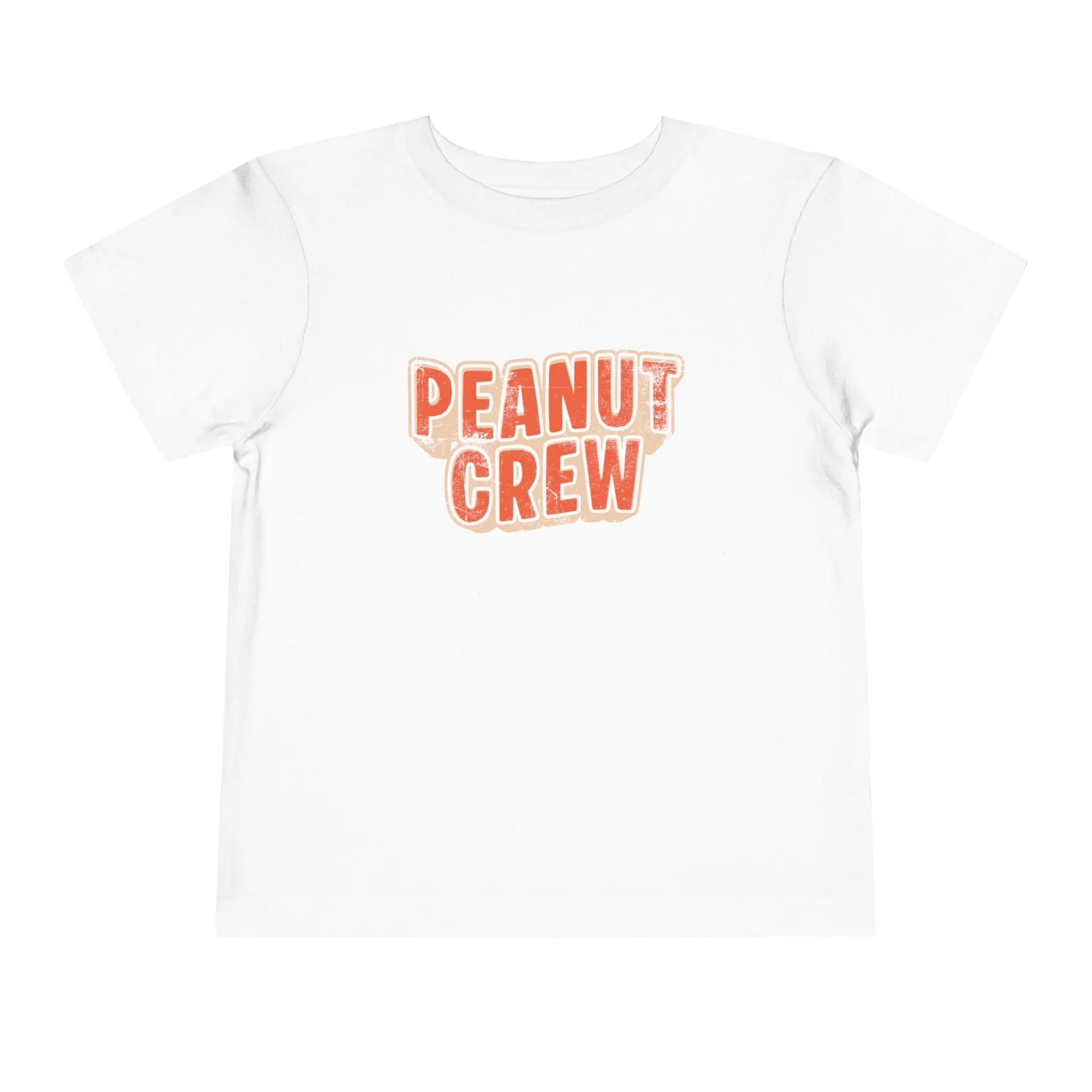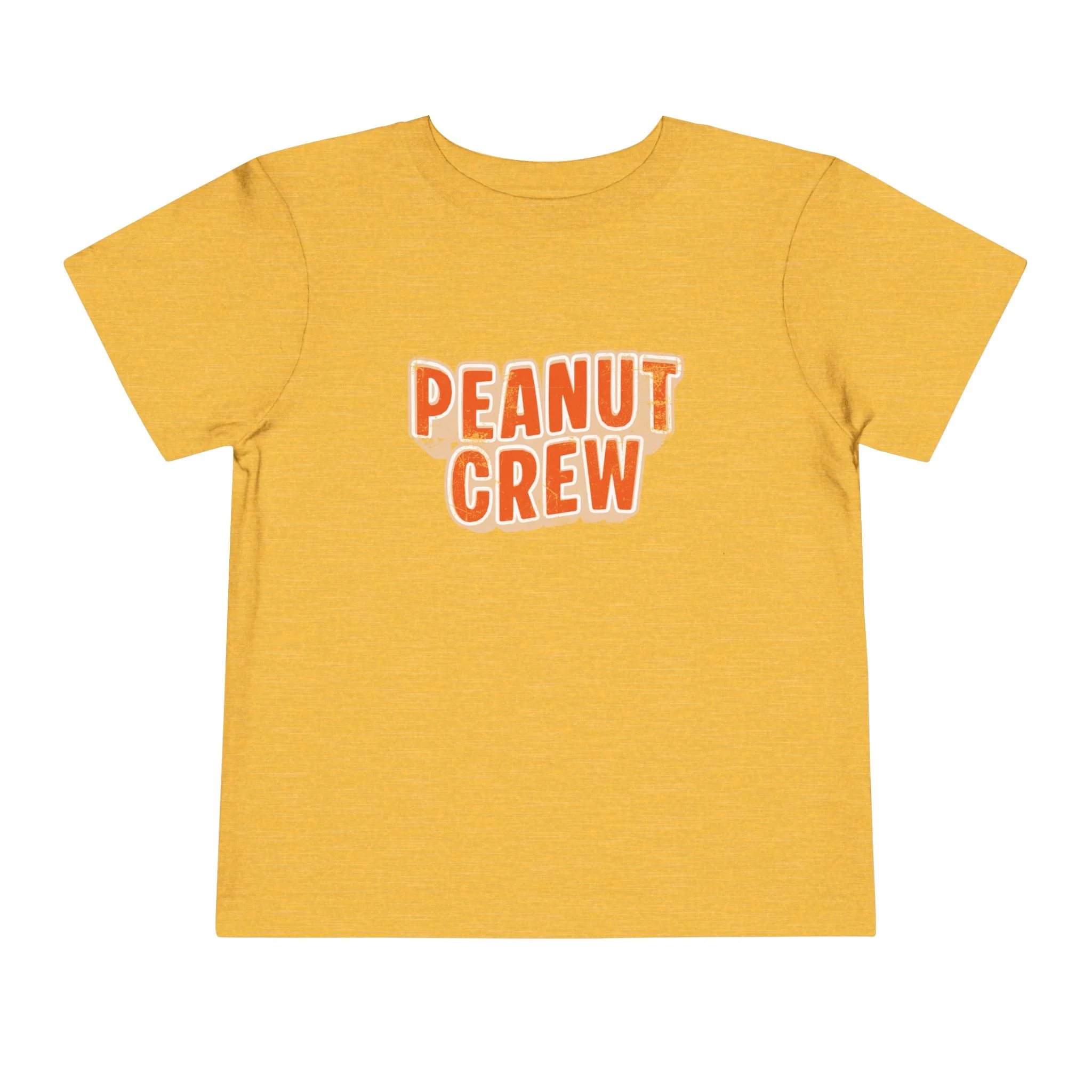 Small hands, big personality. This soft toddler tee carries a playful retro badge-style print that reads “Peanut Crew,” made to sit easy on wiggly afternoons and cozy family mornings. The lightweight knit breathes during playground chases and stroller naps, while the side-seamed shape keeps the shirt from twisting as they move. Simple, soft, and made to be worn again and again — a little wardrobe staple for tiny adventurers who love color and comfort.
