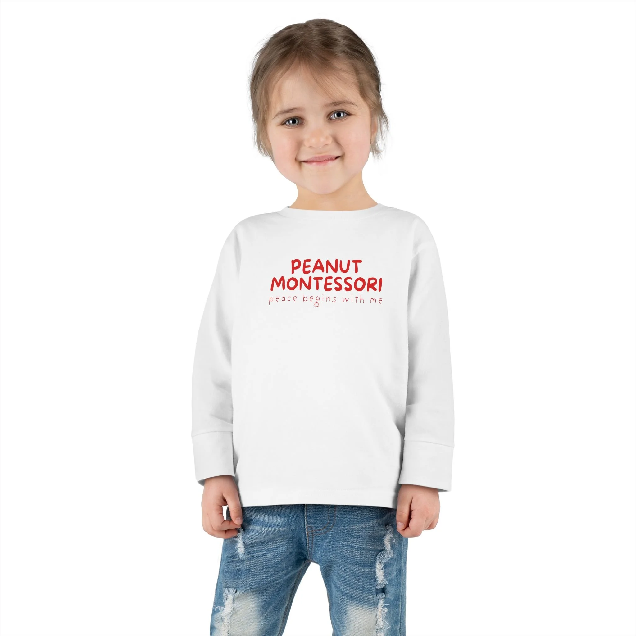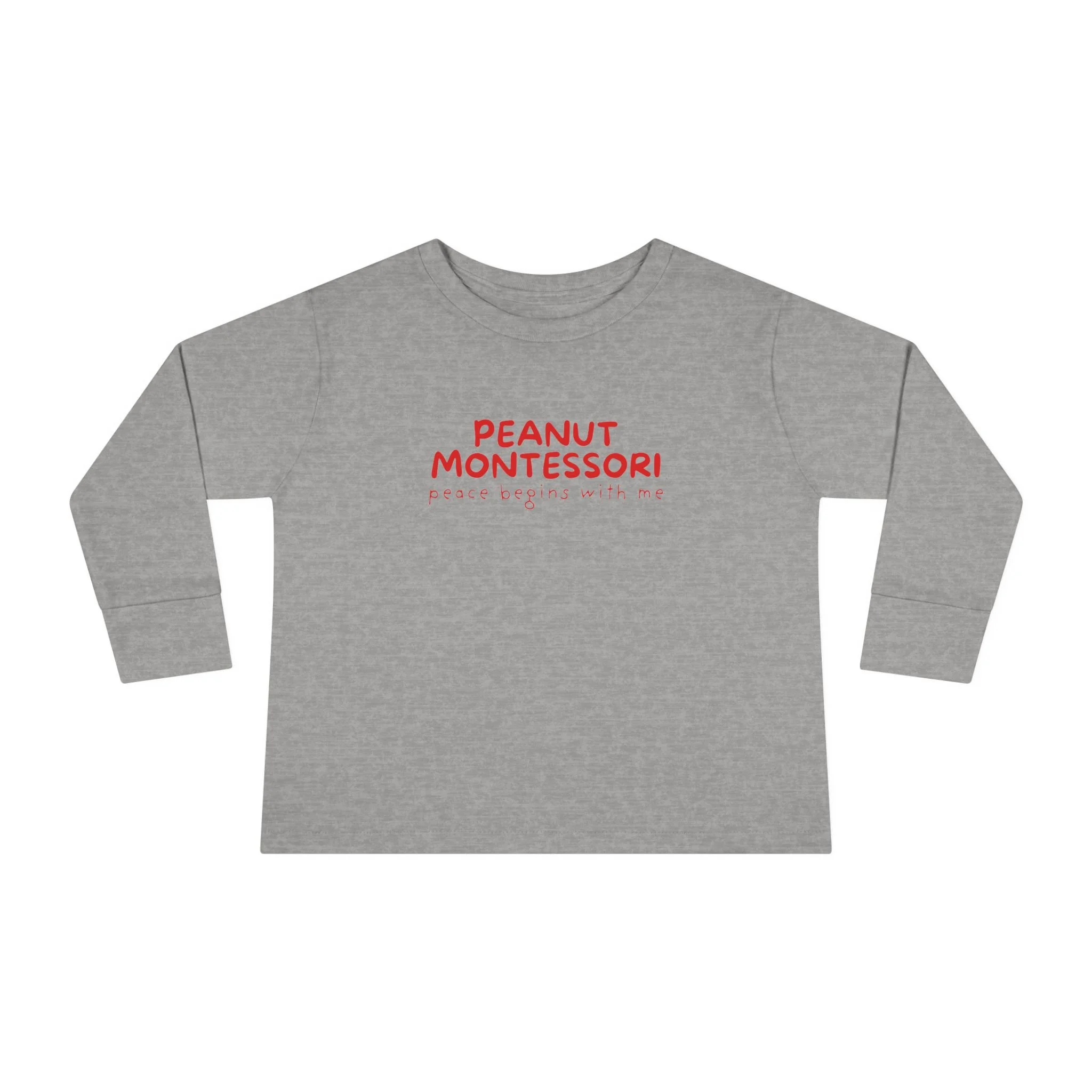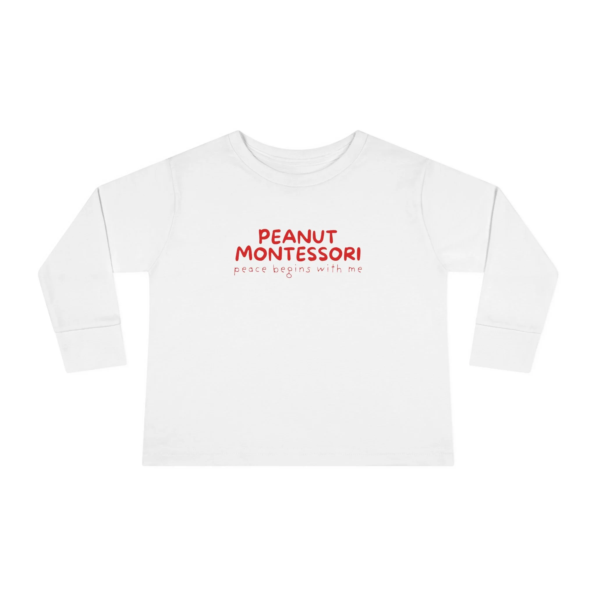 A soft, light-weight toddler long sleeve tee with a simple, hand-lettered design reading “Peanut Montessori.” The shirt feels gentle against sensitive skin and moves easily with active little bodies. Clean lines and ribbed cuffs keep sleeves in place, while side seams and neck-and-shoulder tape maintain shape wash after wash. Whether it’s a morning at the play table, a quiet circle time, or a weekend outing, this tee reads like a quiet, playful nod to small learners and their curious families.